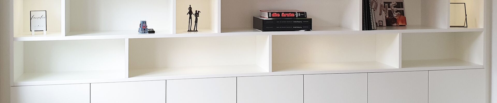 Möbel nach Schema F haben bisweilen ein großes Handicap: sie finden sich nicht passgenau in eine vorhandene Umgebung ein. An den Seiten ein paar Zentimeter zu viel, in der Höhe eine handbreit zu wenig ... Solch unschöne Lücken vermeiden Möbel, die sich nahtlos einfügen. Hübscher Nebeneffekt: ein vorhandener Bereich wird bis in den letzten Winkel als Stauraum genutzt.