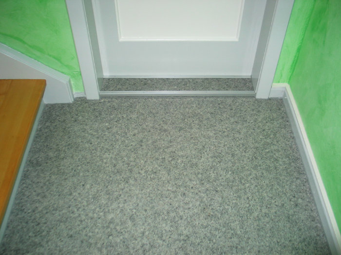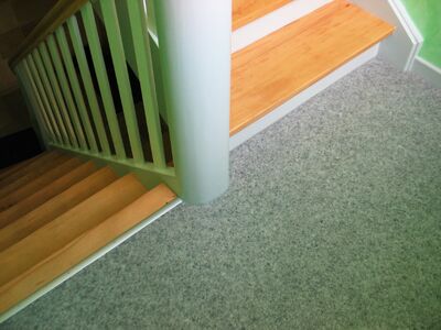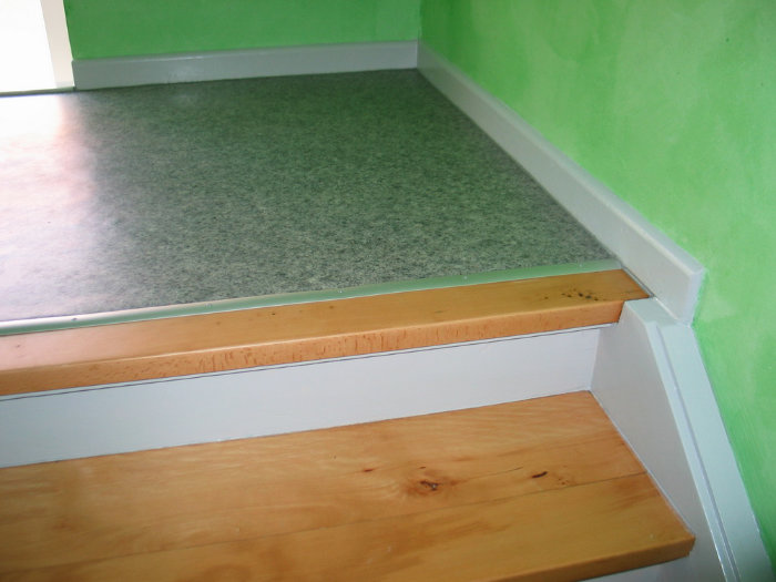 Stufen und Handlauf Buche natur, Podeste Vinyl, Rest weiß lackiert