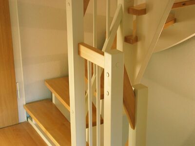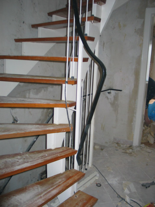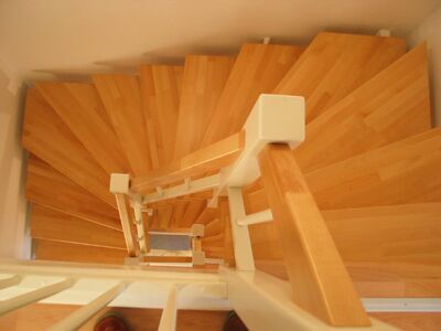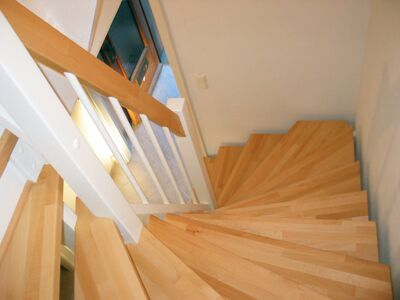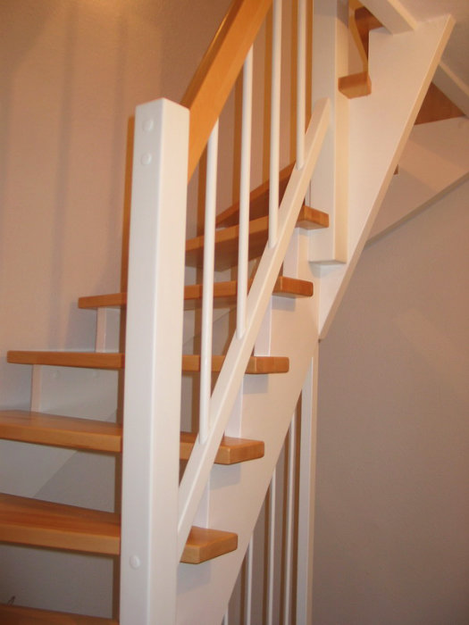 Stufen getauscht - Buche stabverleimt, Holzgeländer neu - weiß mit Handlauf Buche, Rest weß lackiert
