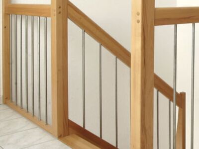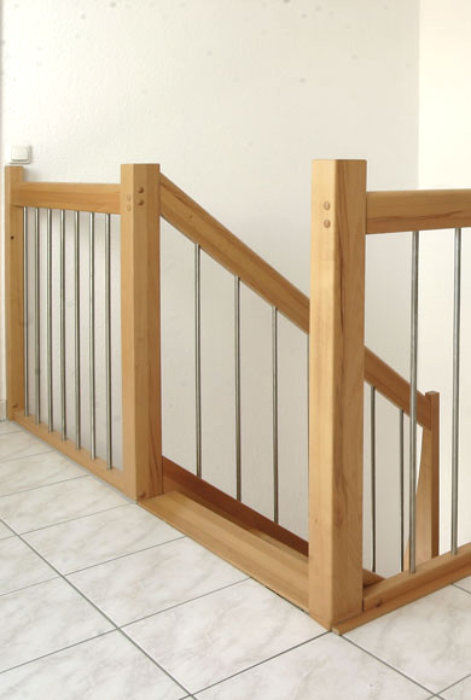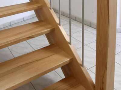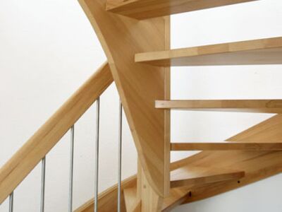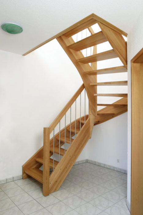 Beidseitig eingestemmte Treppe, 1/2 gewendelt, Holzart: Buche natur, Edelstahl Geländerstab