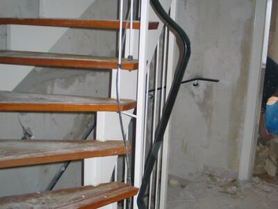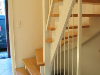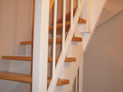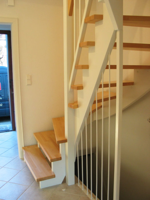Stufen getauscht - Buche stabverleimt, Holzgeländer neu - weiß mit Handlauf Buche, Rest weß lackiert
